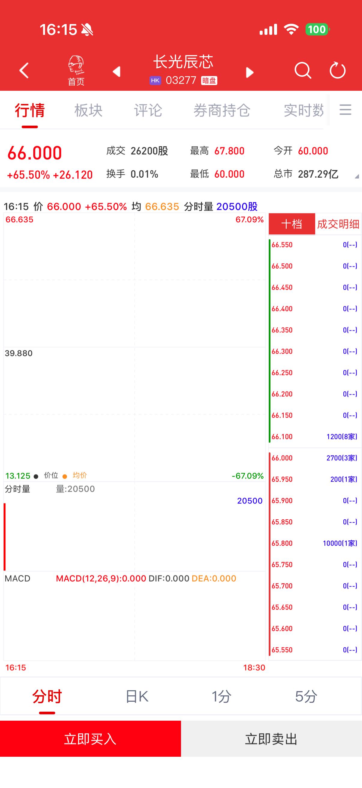 智通财经APP获悉,长光辰芯(03277)将于4月17日(周五)在香港挂牌。截至发稿,利弗莫尔证券暗盘交易显示报价66港元,较招股价39.88港元上涨65.5%,每手100股,不计手续费,每手赚2612港元。