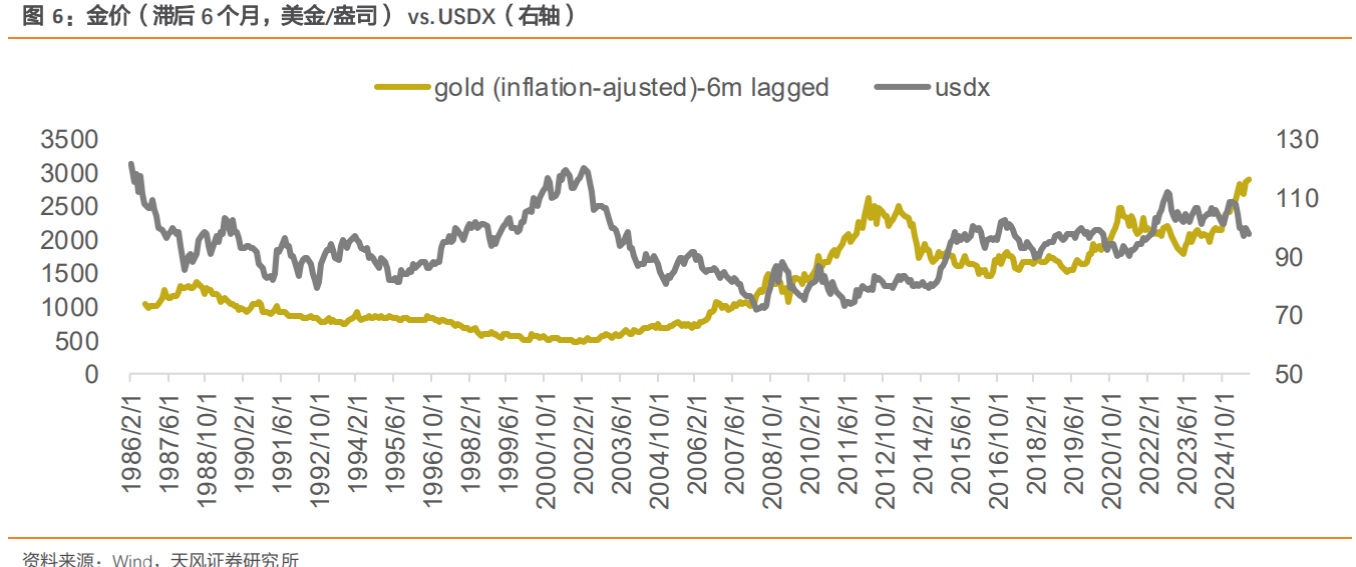 金价与美元指数长期负相关,按照1986-2000, 2000-2020, 2021-2025分段回归,都显示负相关。油价和美元指数关系2020之后出现变化:回归显示,1988-2000年油价和美元指数正相关;2000-2020年,变成负相关;2021年及之后,再度变成正相关。