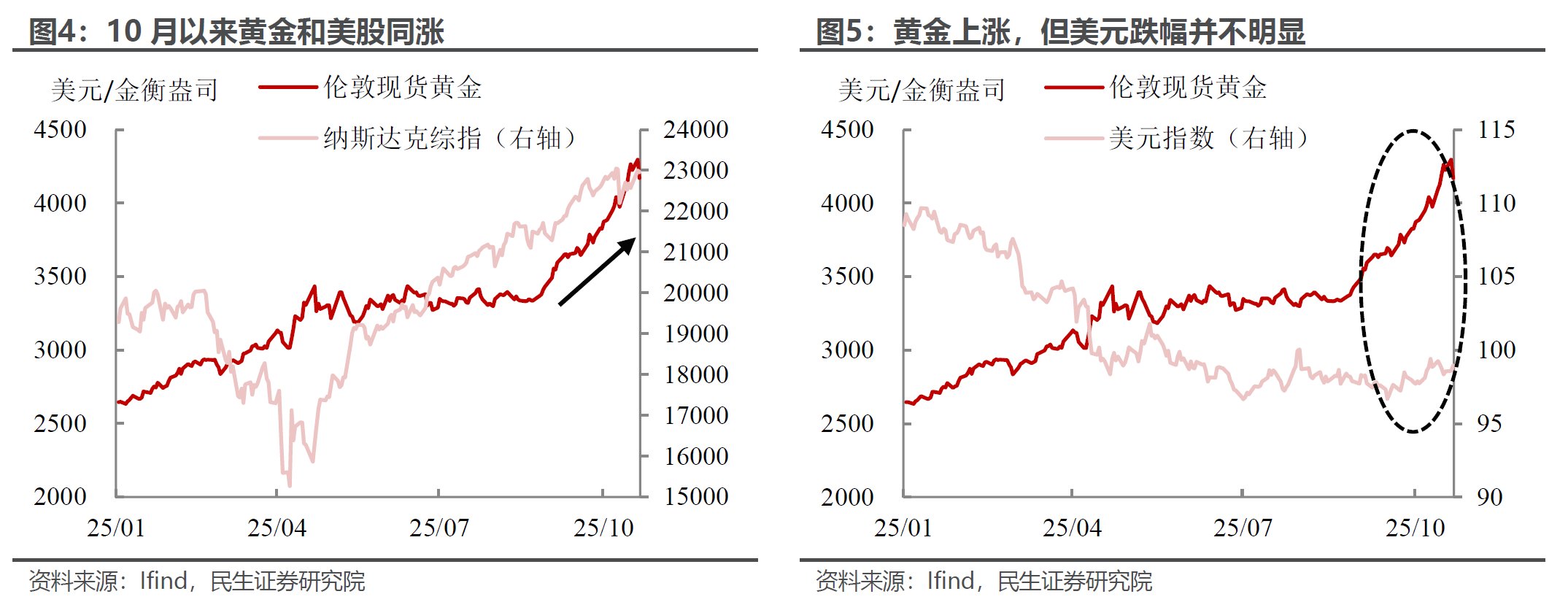 如果说之前的上涨,市场还可以用美联储顶着通胀的过度宽松预期、美元信用以及政府关门来解释,但是最近一两周黄金和股票等风险资产同涨,并且丝毫不惧美元的反弹,这多少有些颠覆了传统的逻辑。