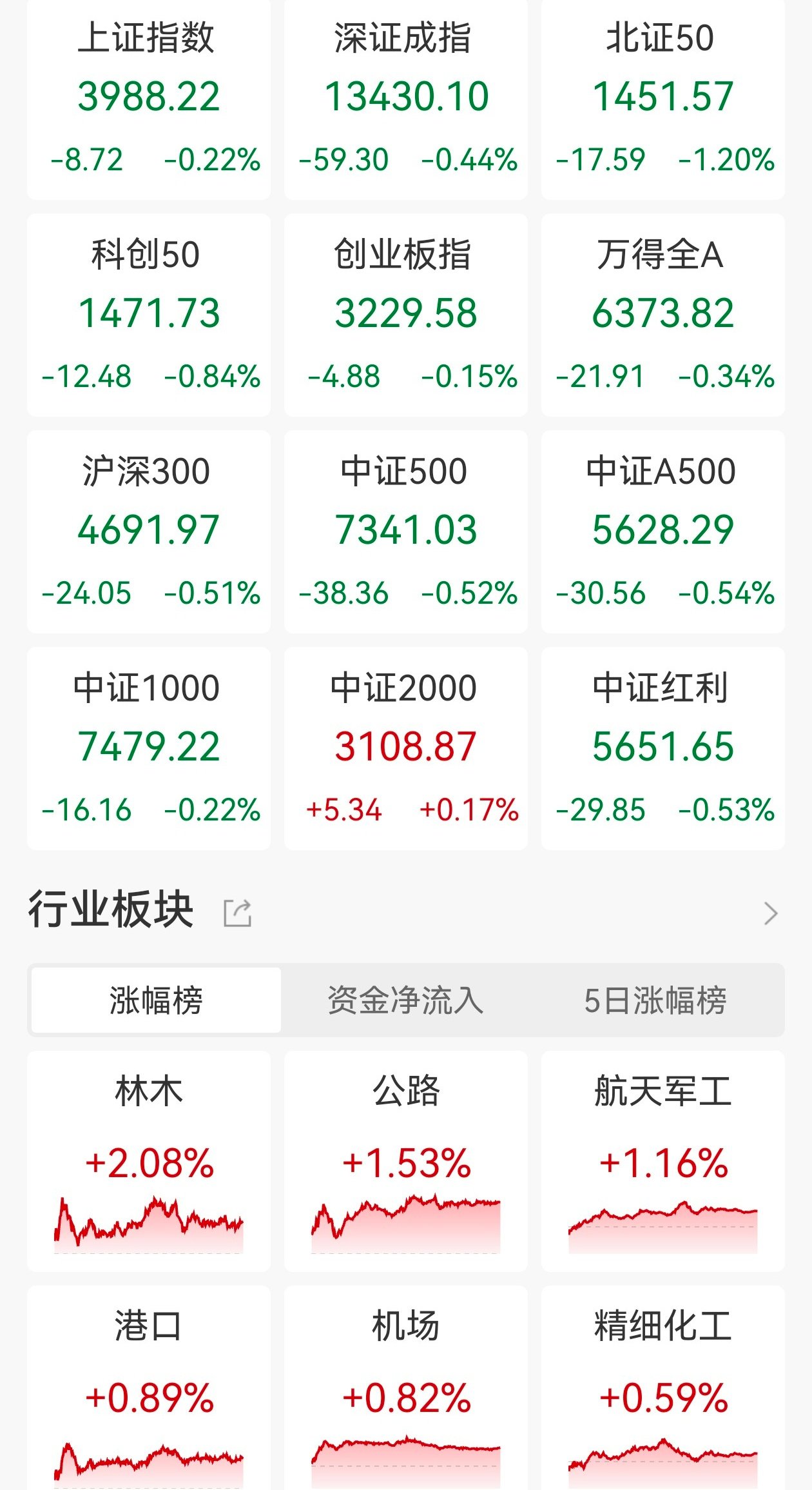 A股主要指数今日早盘震荡上行,午后集体转跌,沪指4000点得而复失;截至收盘,沪指跌0.22%报3988点,深证成指跌0.44%,创业板指跌0.15%,北证50指数跌1.2%。全市场成交额2.17万亿元,较前一交易日缩量1913亿元,超2900股下跌。 盘面上,船舶制造板块走高,江龙船艇20CM涨停;新华社发布署名文章《两岸关系发展和统一利好》,福建板块掀涨停潮,合力泰、海峡创新等十余股涨停;航运港口板块走高,海通发张涨停;超导概念、汽车服务、氟化工及PCB等板块涨幅居前。另外,现货黄金失守3950美元,黄金、贵金属板块走低,赤峰黄金领跌;风电设备板块下挫,大金重工跌逾8%;培育钻石板块走弱,惠丰钻石跌近6%;有色金属、美容护理、钢铁及可燃冰等板块跌幅居前。(格隆汇)