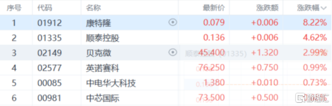 半导体板块活跃,康特隆涨超8%,顺泰控股、贝克微、英诺赛科、中电华大科技、中芯国际等跟涨。