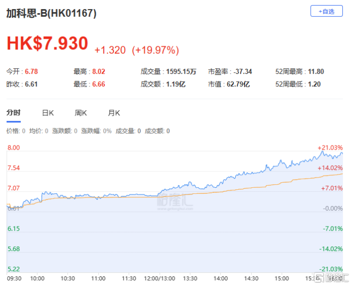 加科思-B涨19.97%%,报7.93港元。消息面上,11月18日,据平安证券,公司自研KRAS G12C抑制剂戈来雷塞已获批上市,并授权艾力斯负责国内商业化。