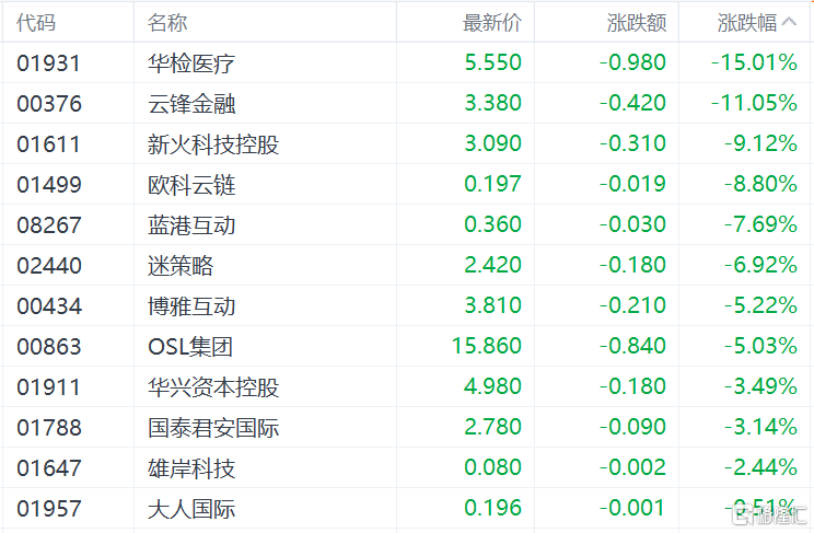 加密货币概念股集体下跌,华检医疗跌超15%,云锋金融跌超11%,新火科技控股跌超9%,欧科云链、蓝港互动、博雅互动、OLS集团跟跌。