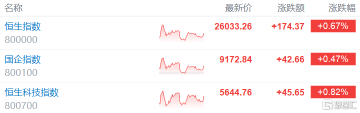 港股迎来12月首日开门红行情,三大指数震荡收涨。恒生指数涨0.67%重回26000点大关,国企指数、恒生科技指数分别上涨0.47%及0.82%,市场情绪总体表现平稳。