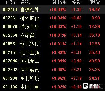 商业航天概念股继续活跃,高德红线、神剑股份、特发信息、立昂微、创元科技、北斗星通、国机精工、通宇通讯、东材科技等多股涨停。