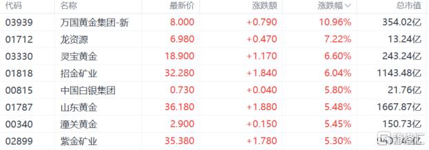 黄金及贵金属、铜概念涨幅居前,龙资源涨超7%,灵宝黄金、招金矿业涨超6%,中国白银、山东黄金涨超5%。消息面上,12月22日,现货黄金站上4400美元/盎司,为历史首次,今年迄今累计涨近68%。现货白银同样刷新历史新高,首次站上69美元/盎司,今年迄今累涨近139%。