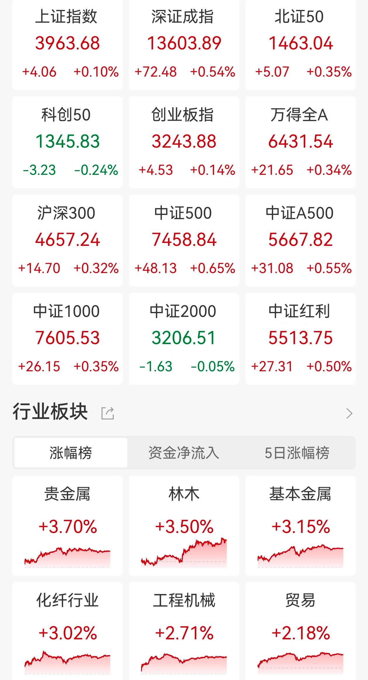 A股三大指数今日继续上行,沪指录得8连涨,深证成指、创业板指录得6连涨;截至收盘,沪指涨0.1%报3563点,深证成指涨0.54%,创业板指涨0.14%。全市场成交额2.18万亿元,较前一交易日增量2372亿元,超3400股下跌。 盘面上,海南封关首周进口“零关税”享惠货物超4亿元,海南板块再度爆发,海南矿业、海汽集团等多股涨停;锂矿概念走高,永兴材料涨停;国际金银铜价格继续上涨,贵金属、有色金属板块拉升,晓程科技涨超10%,江西铜业涨停;商业航天、小金属、钛白粉及氟化工等板块涨幅居前。另外,造纸板块回调,江天科技跌逾12%;激光雷达板块走低,仕佳光子等多股跌逾5%;光刻机(胶)板块走弱,双乐股份领跌;混合现实、电子化学品及彩票概念等跌幅居前。(格隆汇)