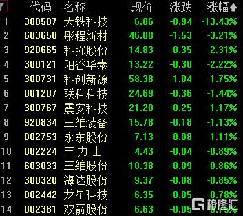 橡胶制品板块走低,天铁科技跌超13%,彤程新材跌超3%,科强股份、阳谷华泰跌超2%。