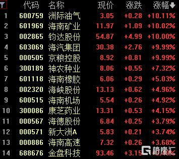 海南板块大涨,洲际油气、海南矿业、钧达股份、京粮控股涨停,神农种业涨超7%