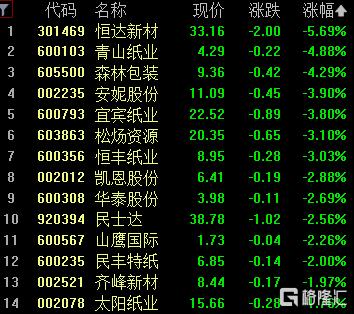 造纸板块回撤,恒达新材跌超5%,青山纸业、森林包装跌超4%,安妮股份、宜宾纸业跌超3%。