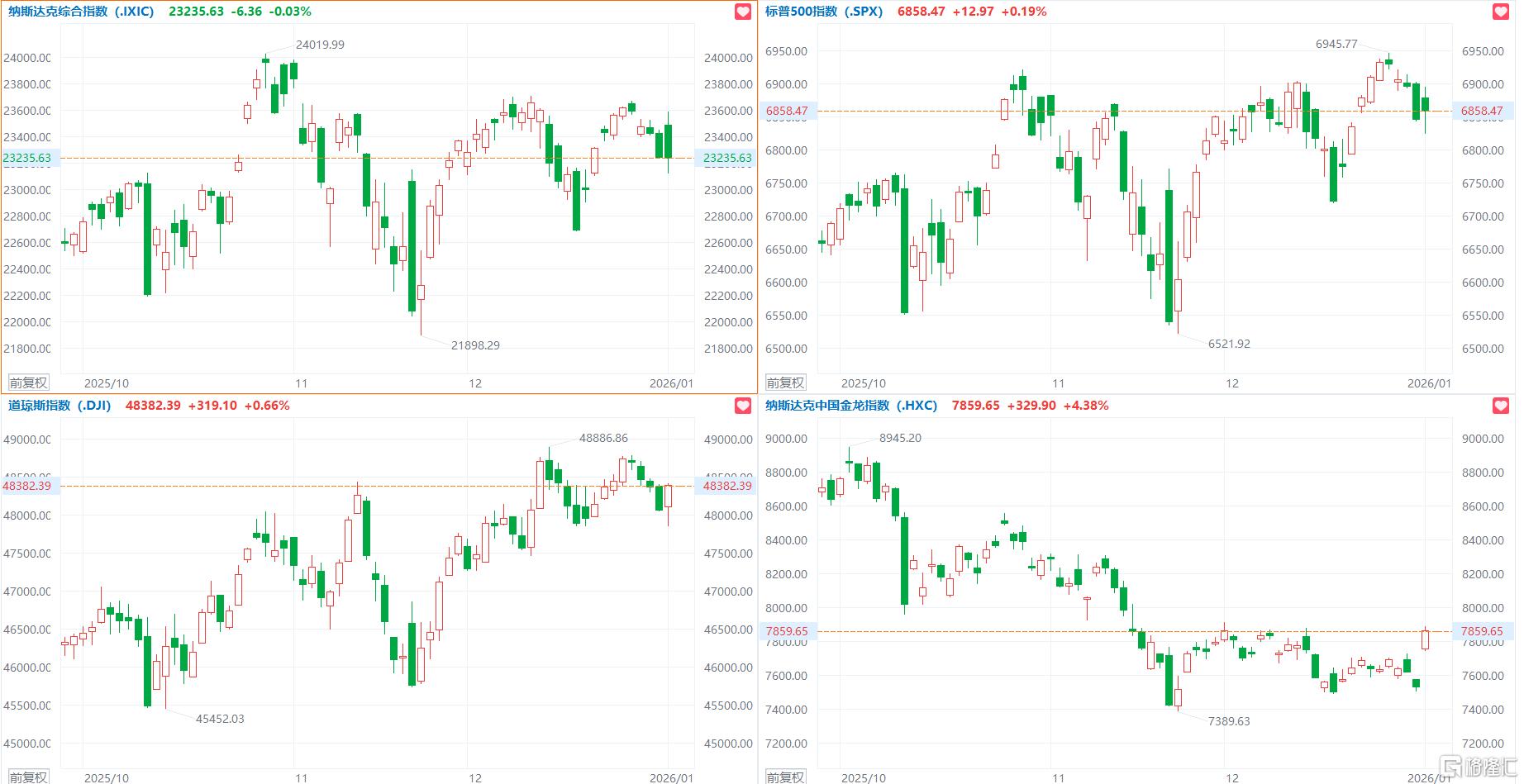 美股三大指数收盘涨跌不一,纳指高开低走,收跌0.03%,标普500指数微涨0.19%,道指涨0.66%。明星科技股表现分化,阿斯麦涨超近9%,美光科技涨超10%,二者股价均创历史新高。AMD涨超4%,英伟达涨超1%,谷歌微涨;特斯拉、微软跌超2%,亚马逊跌近2%,Meta跌超1%,苹果微跌。