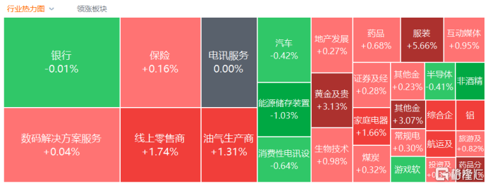 盘面上,大型科技股走势分化明显,其中,阿里巴巴、京东涨近3%,百度、美团跌超2%,腾讯小幅走低;铜业股、黄金股等有色金属股再度活跃,尤其是招金矿业盘中刷新历史新高价;石油股、互联网医疗概念股齐涨,此外,连续下跌的濠赌股终见反弹,美高梅止步5连跌。另一方面,三大航空股高位回落,东航跌超4%;光伏股全天低迷,近期连续走强的纸业股下跌,内房股、建材水泥股集体弱势。此外,MINIMAX-WP、金浔资源、瑞博生物-B三只新股今日上市。