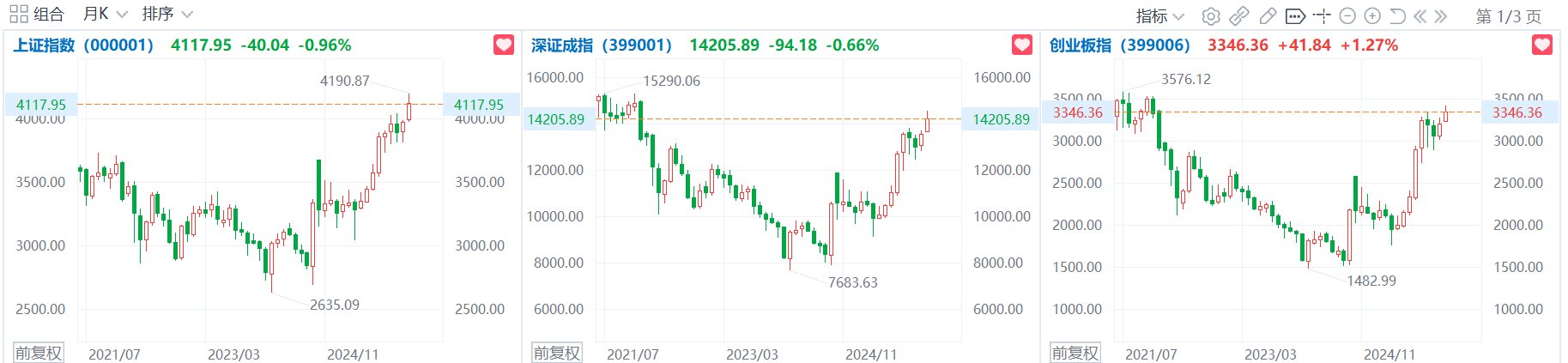 A股主要指数1月份集体上涨,沪指涨3.76%报4117.95点,深证成指涨5.03%报14205.89点,创业板指涨4.47%报3346点;北证50指数涨6.33%,科创50指数涨12.29%。 板块方面,近20个交易日涨幅前五的板块为:贵金属涨85.06%、油气开采及服务涨37.2%、小金属涨26.33%、工业金属涨21.17%、半导体涨20.84%;同期,跌幅前五的板块为:机场航运跌4.76%、银行跌2.66%、汽车整车跌2.34%、汽车服务及其他跌0.8%、证券跌0.27%。 个股方面,1月涨幅前五的个股为:C恒运昌涨352.74%、志特新材涨234.08%、锋龙股份涨213.97%、科马材料涨207.63%、湖南白银涨175.14%;同期,跌幅前五的个股为:*ST奥维跌57.14%、*ST万方跌47.65%、天普股份跌44.16%、荣科科技跌36.8%、森鹰窗业跌34.59%。(格隆汇)