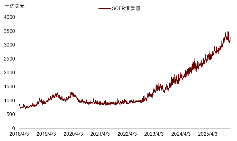 真正使得当下美联储不得不常态化扩表的,是财政主导对货币政策的捆绑。如前所述,当前美国金融市场严重依赖回购融资,而美债又是回购市场的核心抵押品(图表3)。也就是说,如果财政发债无人承接,那么美债贬值将连带紧缩市场融资规模,并通过“抵押品乘数”(collateral multiplier)放大紧缩效果。因此,财政扩张+充裕流动性体系+QT的组合存在天然矛盾,QT也最终多是通过引爆美债-回购市场的风险(潜在系统性风险)迫使美联储下场重新QE救市而收场。2019年9月的回购市场风险、2020年3月的美债市场风险、乃至去年4月对等关税问题,及之后美联储在QT政策上的迅速转向,已经屡次证明了这一结果。2024年以来中金公司持续提示,在面临国内贫富差距问题和全球地缘与科技竞争的当下,美国财政紧缩的可能性比较低,特别是今年面临中期选举压力,特朗普扩张财政的迫切性有增无减。