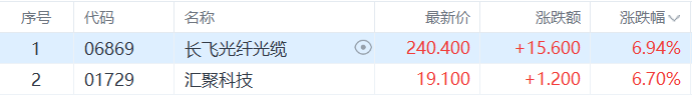光通信股拉升,长飞光纤光缆涨超7%续创新高,汇聚科技涨超6%。